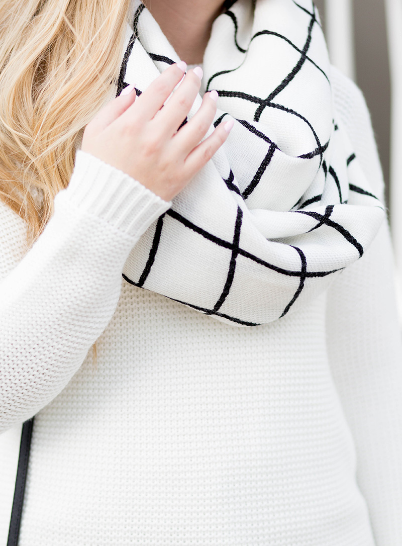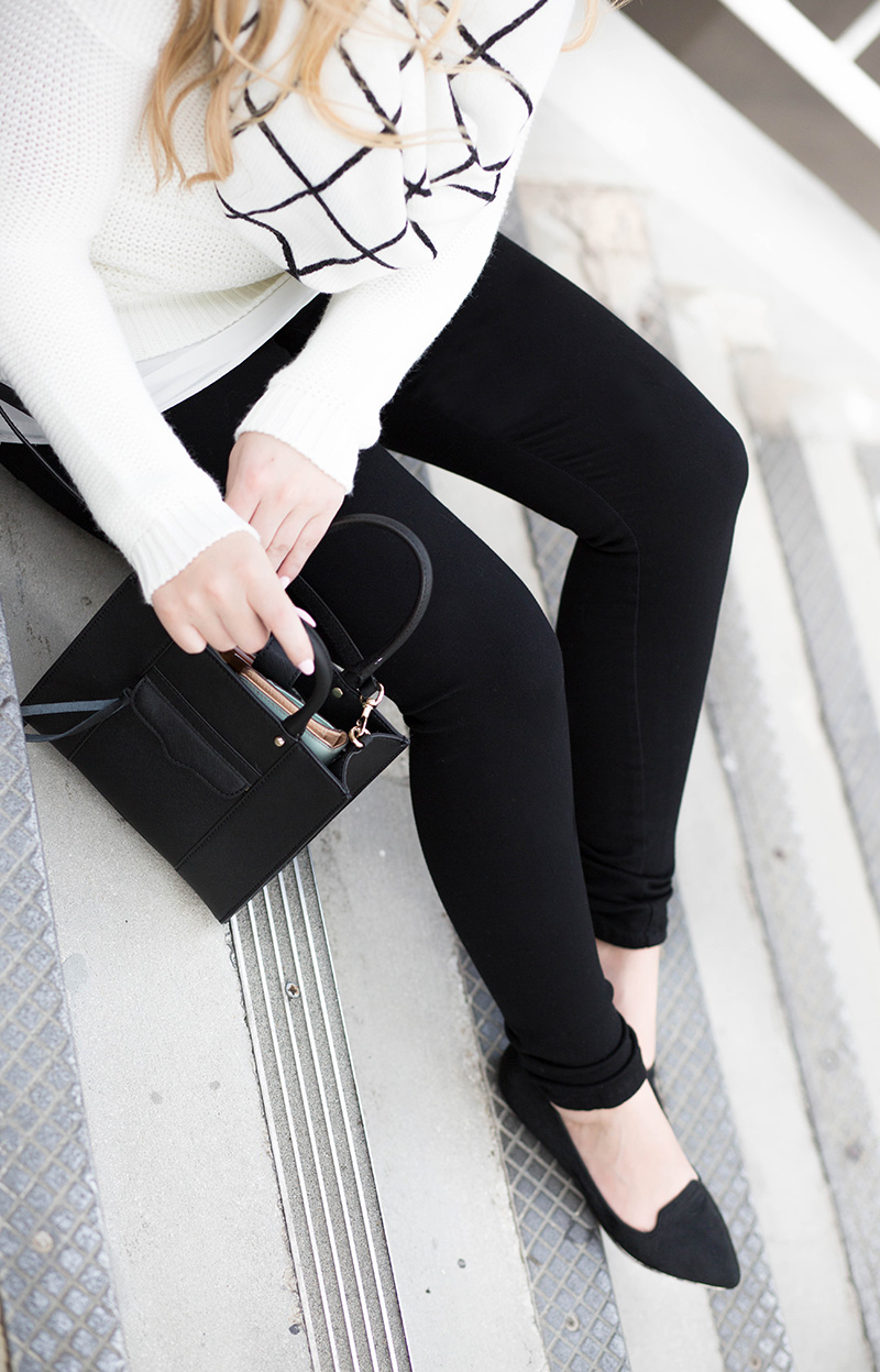 James Jeans c/o | Asos Grid Scarf c/o | Ivory Waffle Sweater | Chiffon Tank Underlay c/o Market Boutique – similar option | Rebecca Minkoff Crossbody | Dolce Vita Flats | identical Sunnies | Bareminerals ‘Express Yourself’ Lips c/o