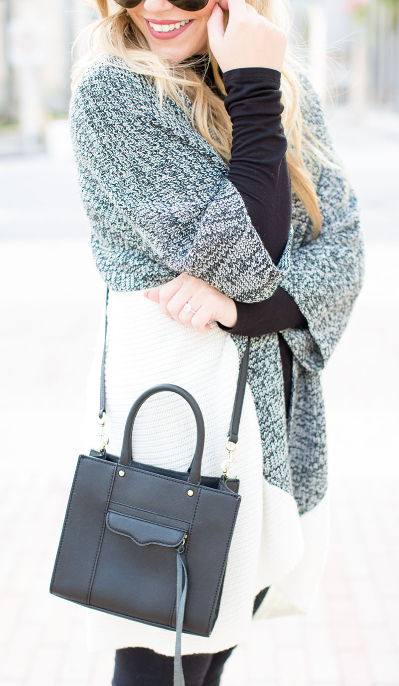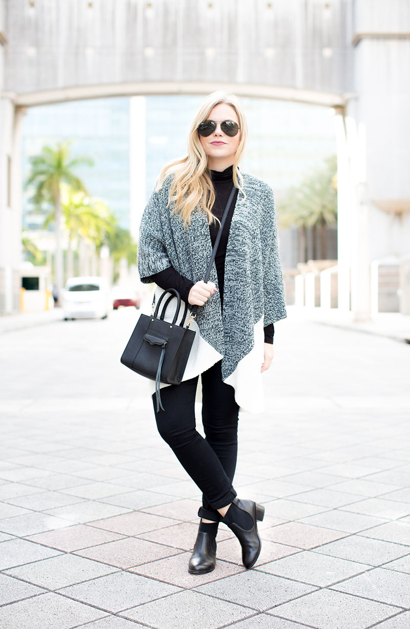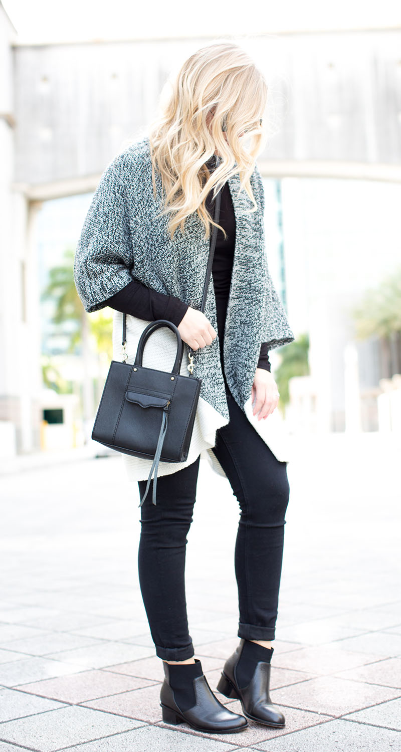 James Jeans Black Skinnies | Target Colorblock Cardigan {limited sizes, so other faves below} | Target Black Turtleneck {clearance!} | Elaine Turner Ankle Booties {on sale for $100!} | Rebecca Minkoff Mini Crossbody Tote | Rayban Black x Black Aviator Sunnies | Lorac Lips