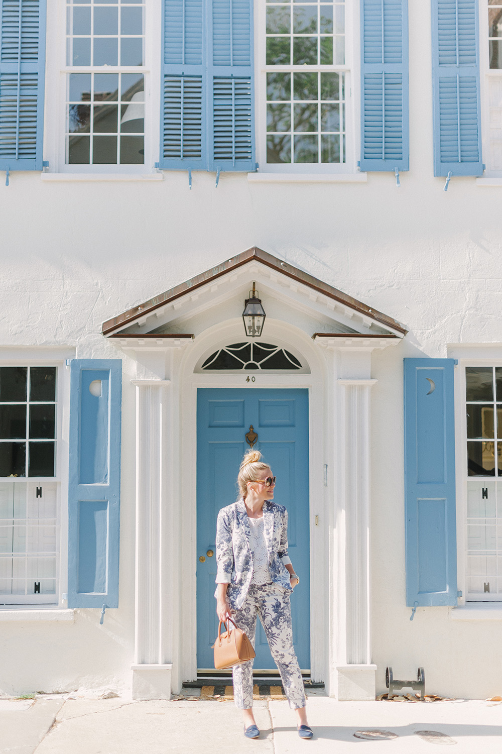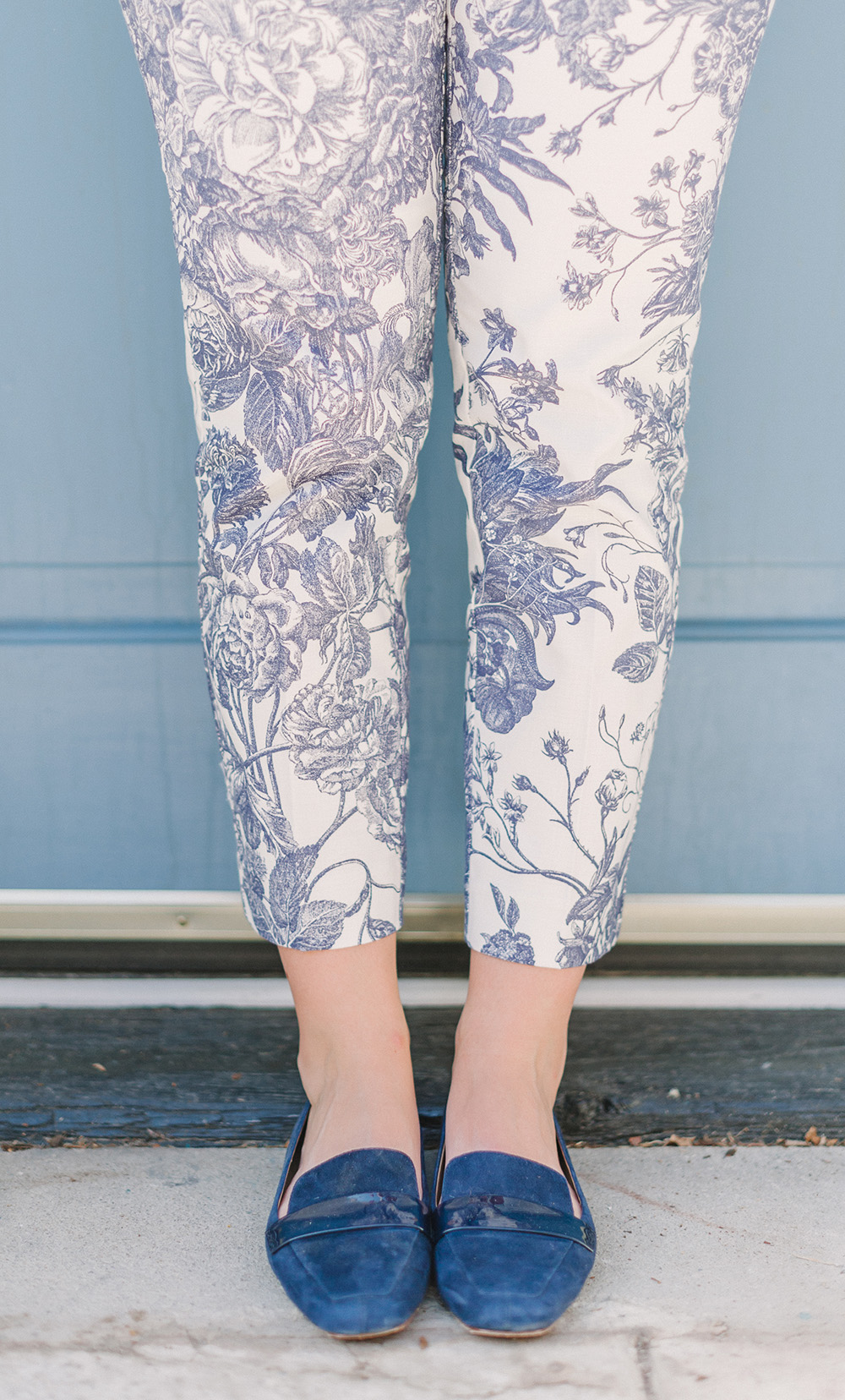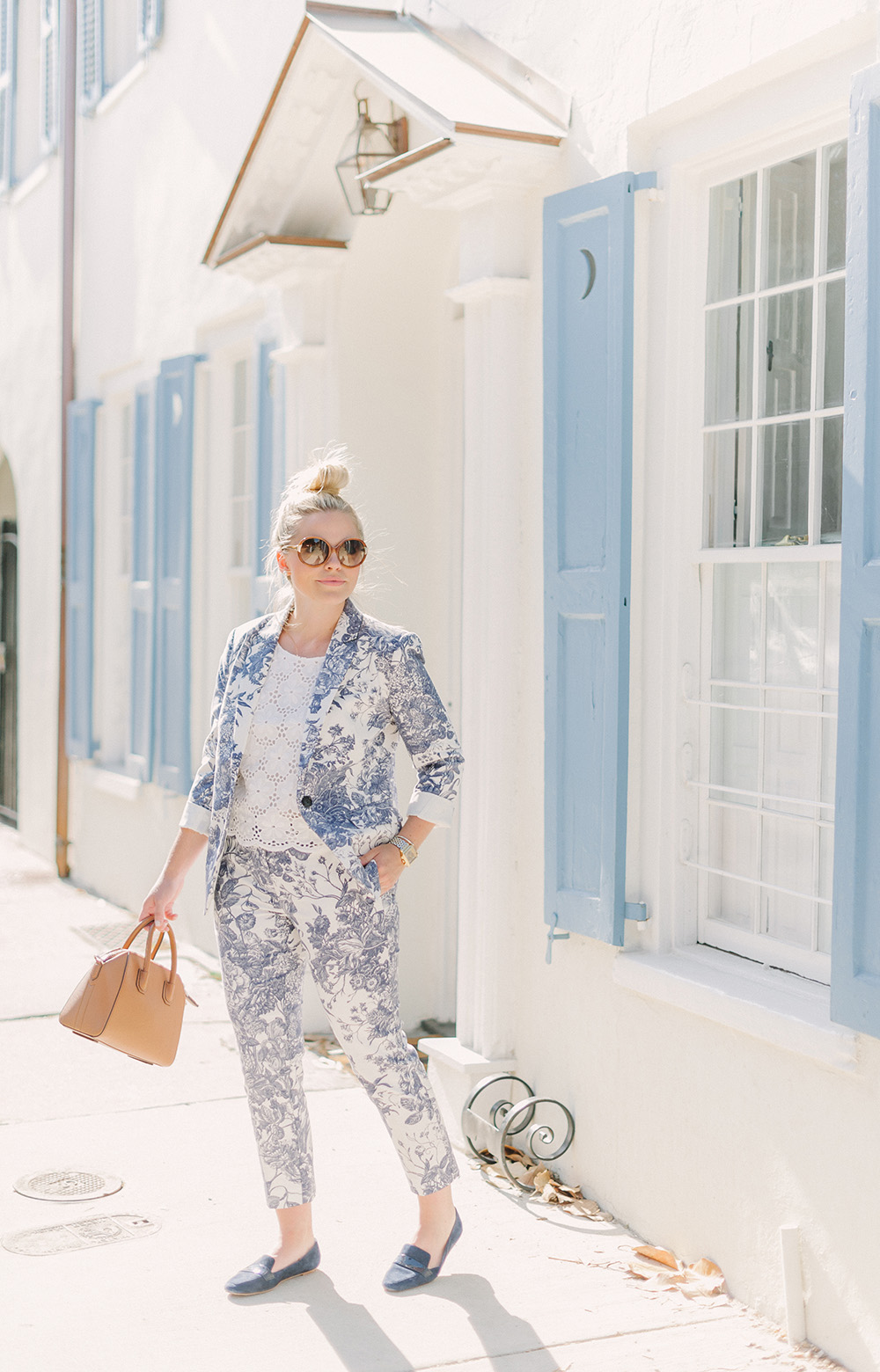 LOFT Blue Botanical Blazer {currently 40% off with code: OHGOODIE} | LOFT Blue Botanical Crop Pants {currently 40% off with code: OHGOODIE} | Givenchy Antigona Handbag | similar Round Sunglasses {+ only $24! mine are old Kate Spade} | Delman Loafers c/o {identical option in stock}