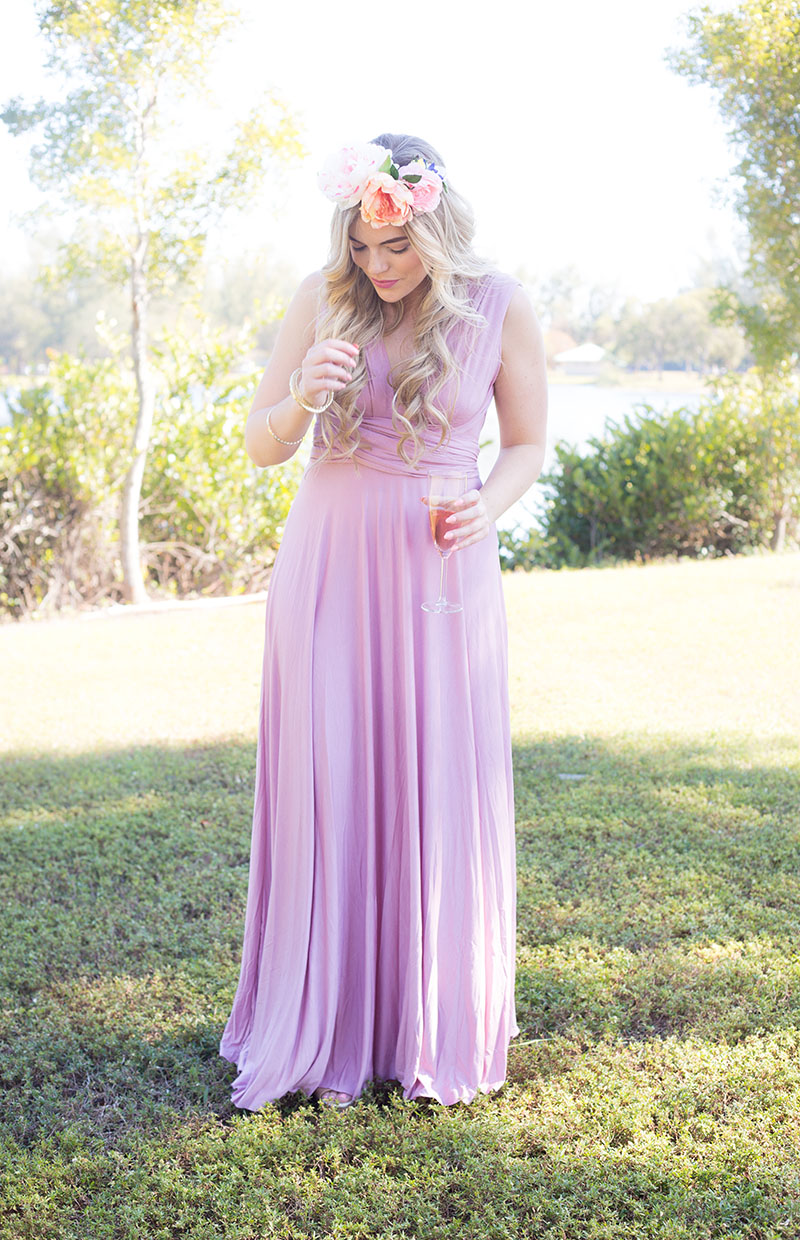 OUTFIT DETAILS: LuLu*s Dress in ‘Mauve’ | Kendra Scott Bracelets | Hair + Makeup c/o Glamsquad | Crown c/o Crowns by Christy | Karen Walker sunnies