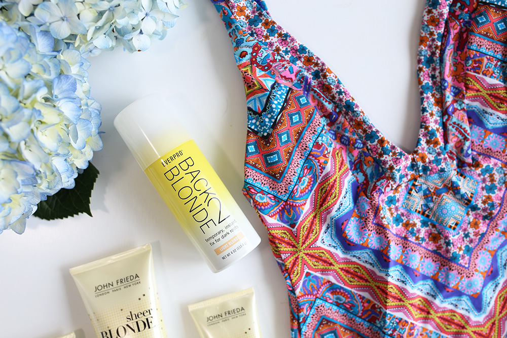 Luckily I’ve managed to find several key products that keep my blonde hue crisp between salon visits! I’m a natural blonde, but age is beginning to get the best of me with my locks, and I’ve slowly started seeing the slight darkening of my roots {noooooo}. Where has the time {and my youth} gone?! Haha. I’ve tried everything from cleansers and hair detox systems, to blue and purple shampoo/conditioner, but one of the fastest and easiest ways to disguise dark roots in a pinch is Back2Blonde. Their formula is fast-acting and doesn’t leave any kind of residue on your hair in the process. Not to mention it’s super affordable {$12.99} and readily available at CVS, Walgreens + Rite Aid.